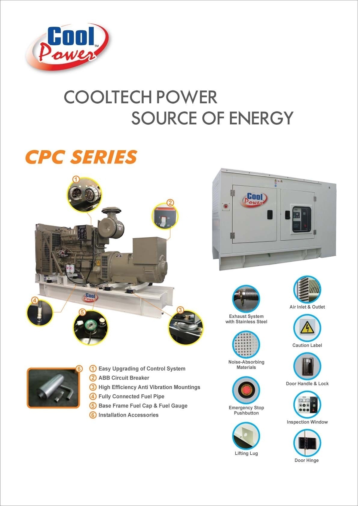 Các tổ máy do Cooltech sản xuất từ 4kVA đến 2500kVA, máy trần hay có vỏ, máy phát điện có vỏ kéo được, các trạm năng lượng siêu cách âm, v.v. Các máy phát điện được sản xuất đáp ứng tiêu chuẩn sản xuất ISO8528 với chất lượng tốt nhất và đáp ứng tiêu chuẩn xuất khẩu cho thị trường quốc tế.